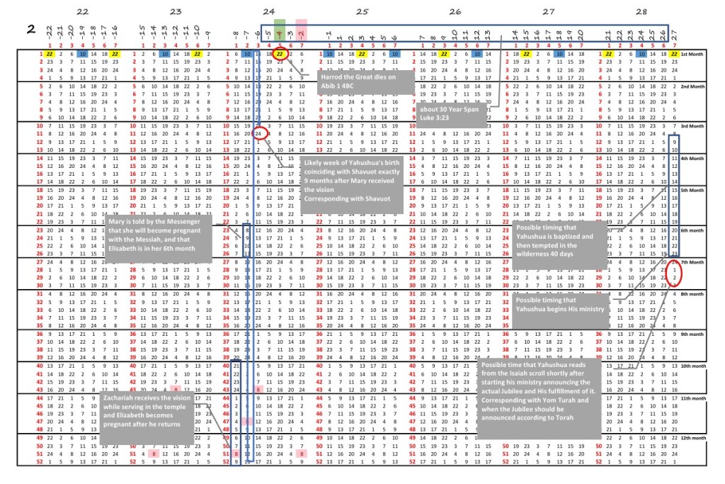 Using the priestly courses chart, we can actually trace it back to the very time that Zachariah served in the temple according to his division. (Luke 1:5). This is where having a good understanding the priestly courses really helps in narrowing down this as we can actually pinpoint using the courses when he served in the 11th or 12th Biblical month preceding the conception of John the Baptist further validating the account.